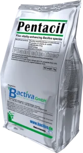Pentacil® is a water dispersible plant vitalizer which increases vitality and strengthens the plant’s immune system. The product contains five highly potent Bacillus species that naturally strengthen the plants: Bacillus amyloliquefaciens, B. licheniformis, B. pumilus, B. simplex and B. subtilis. Pentacil® is suitable for soil and foliar applications. Bacillus spores are more resistant to adverse environmental conditions than the spores (conidia) of Trichoderma fungi. This is especially true for the conditions on the leaf surface where they are exposed to dryness and UV radiation. Therefore, Pentacil® is a useful supplement to Trichoderma products, such as Bactiva®, especially when application is difficult and when the microorganisms encounter challenging living conditions.