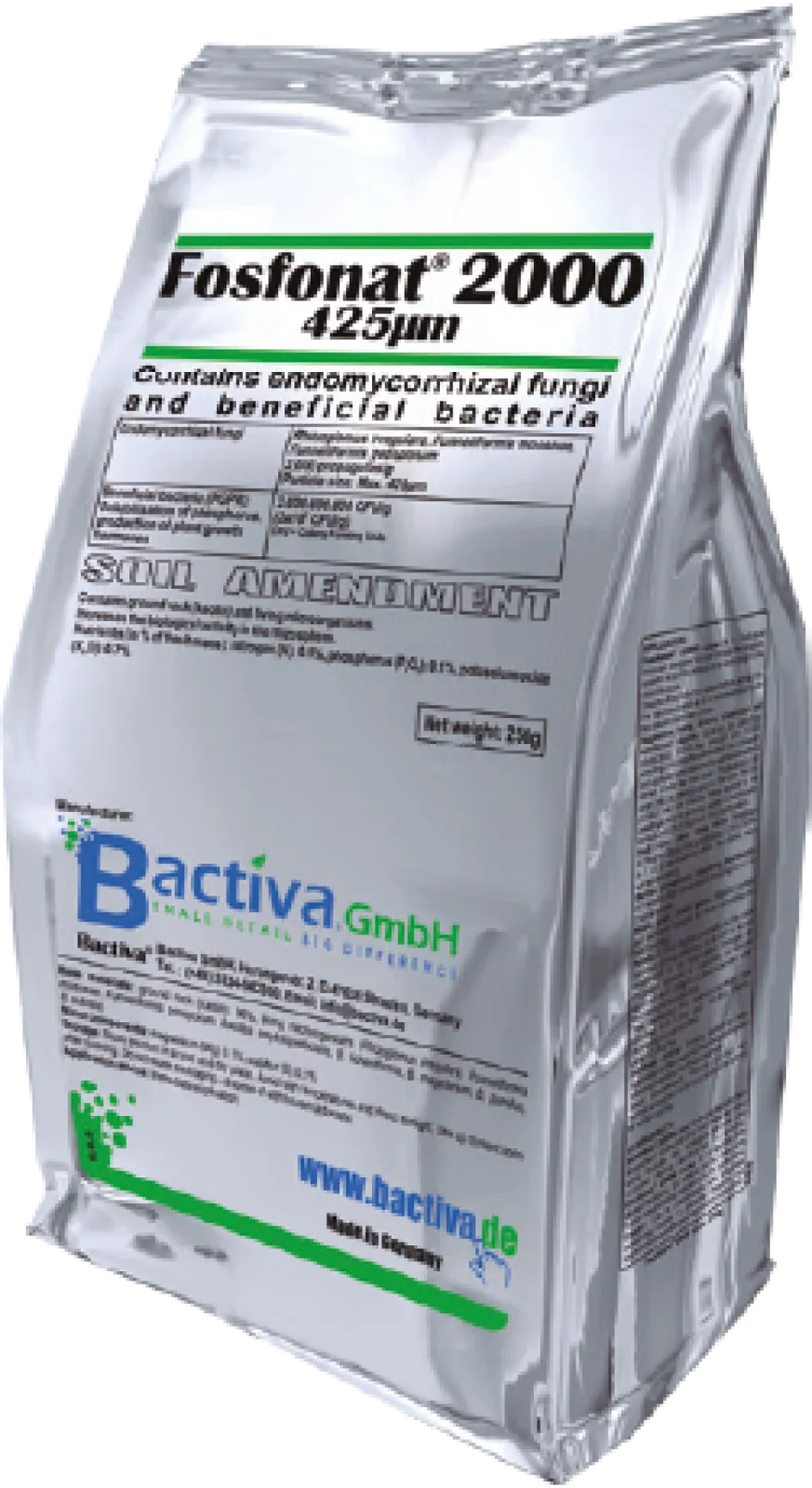 Fosfonat® 2000 is a biological inoculant based on mycorrhizal fungi, which provide the plant with an additional supply of water and nutrients.